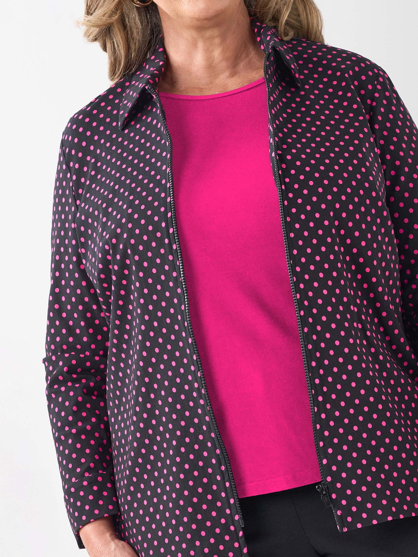 Collared Zip Front Jacket - Pink Polka Dot