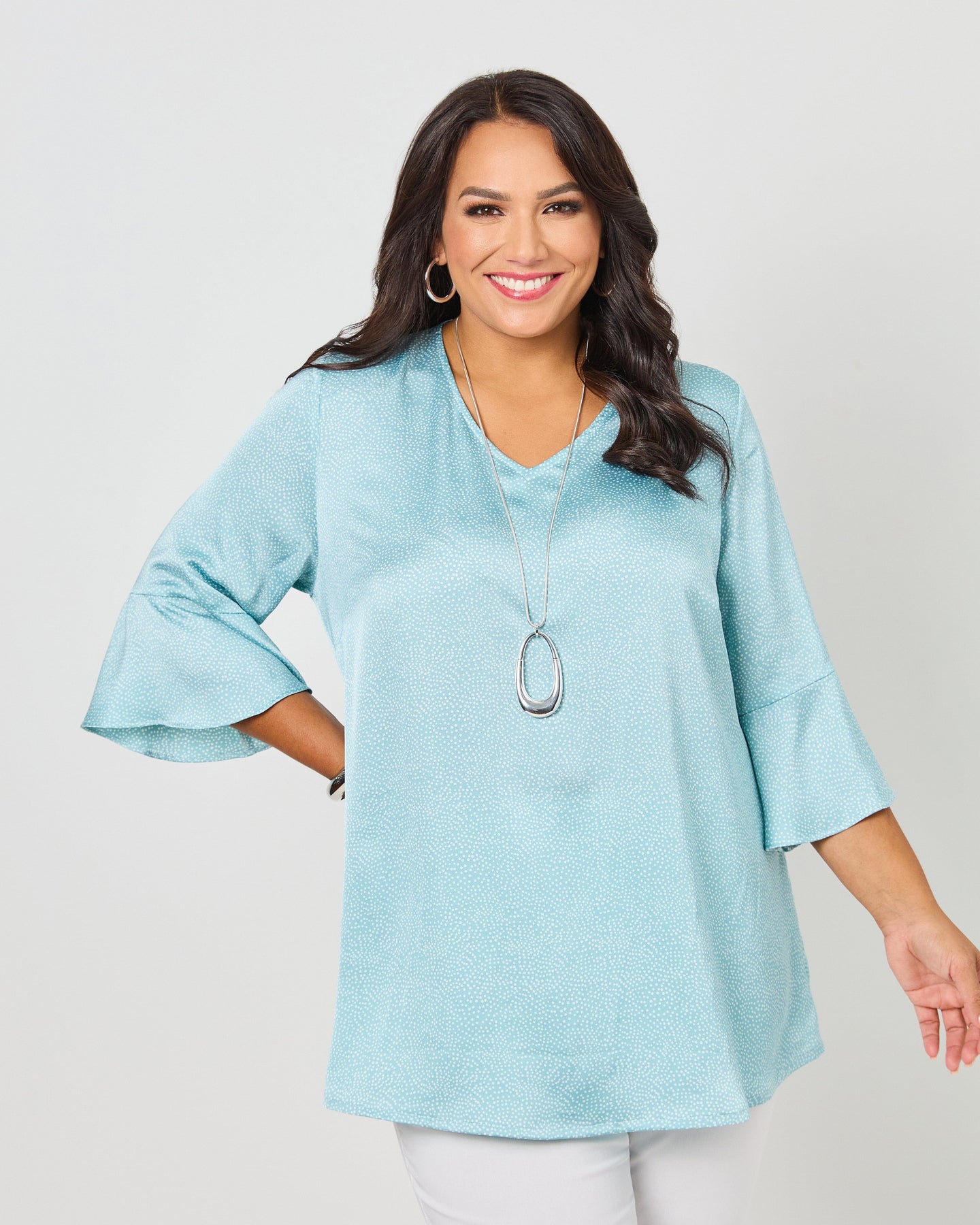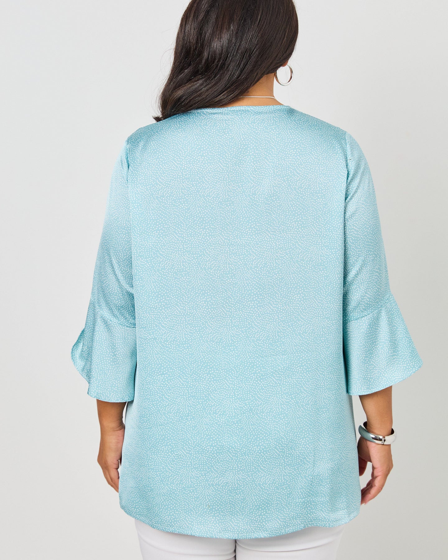 V-Neck Frill Sleeve Top - Sage Mini Spot