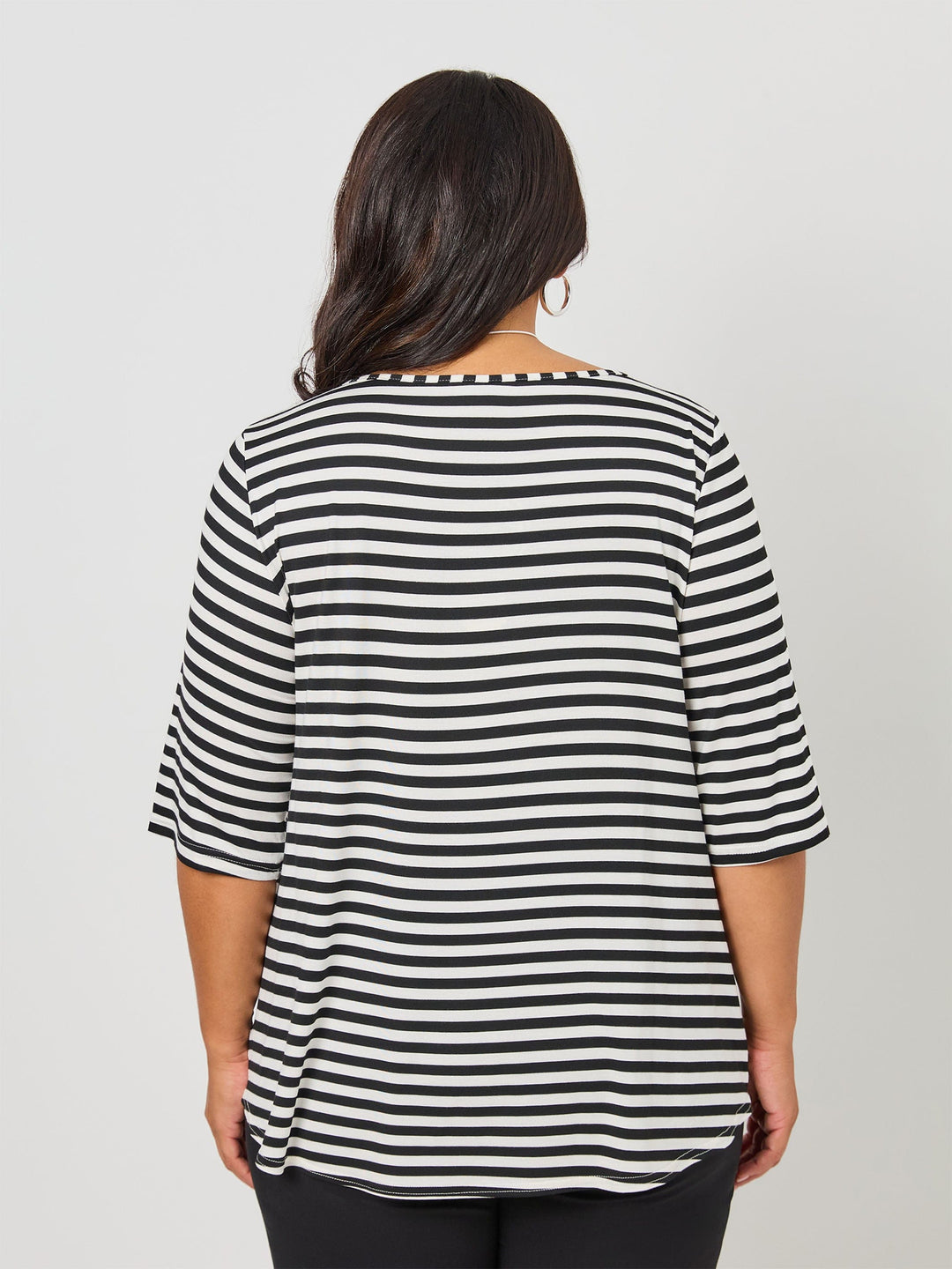Mid Forearm Sleeve Plus Size Tee - White Black and Stripe