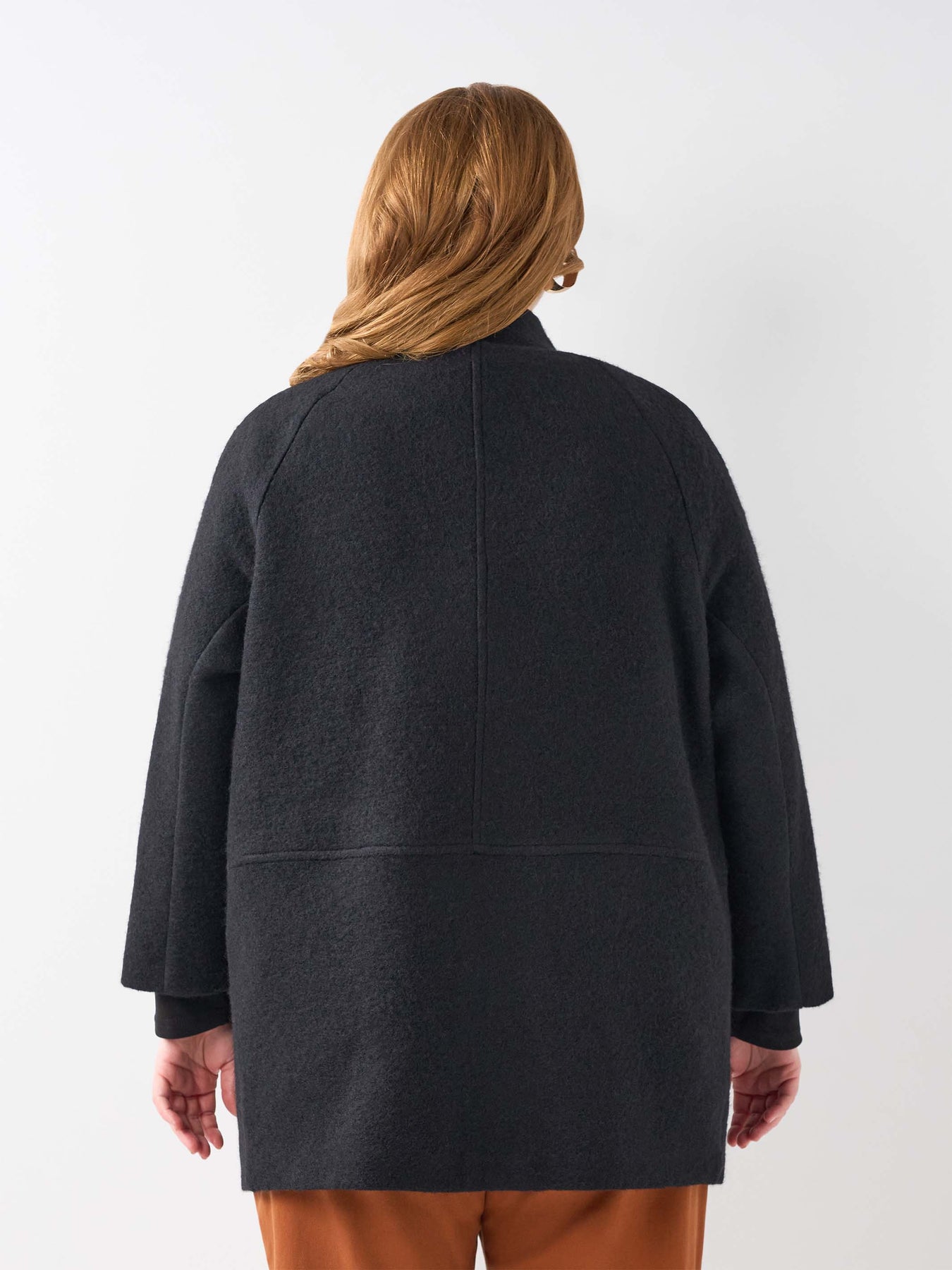 Nothing beats wool to have you feeling as snug as a bug in a rug. Crafted in a refined wool blend, it offers a warm, cosy handle while remaining elegant and refined. The Nehru collar and simple button-through front create a timeless look, complemented by long sleeves and practical front pockets. Falling to hip length, it layers beautifully over tops and knits, making it a versatile and sophisticated choice for winter days and evenings.