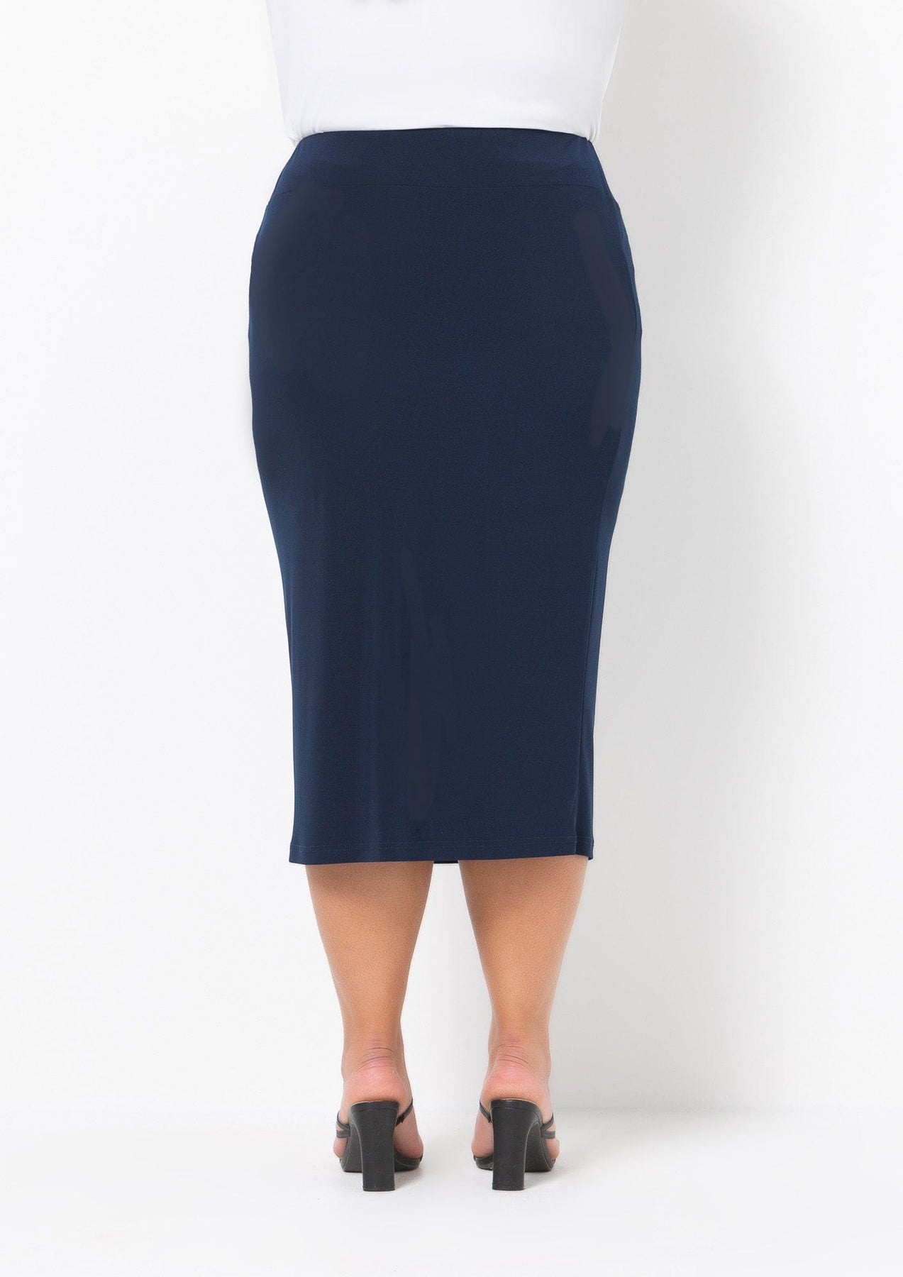 The Swish classic jersey plus size skirt in a longer length. Sitting mid calf, this comfortable stretch plus size skirt will be an essential and versatile addition to your wardrobe. Perfect for work, play or eveningwear