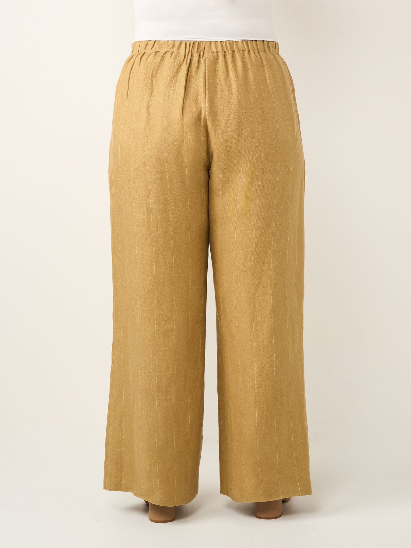 Pinstripe Plus Size Linen Pant - Sahara