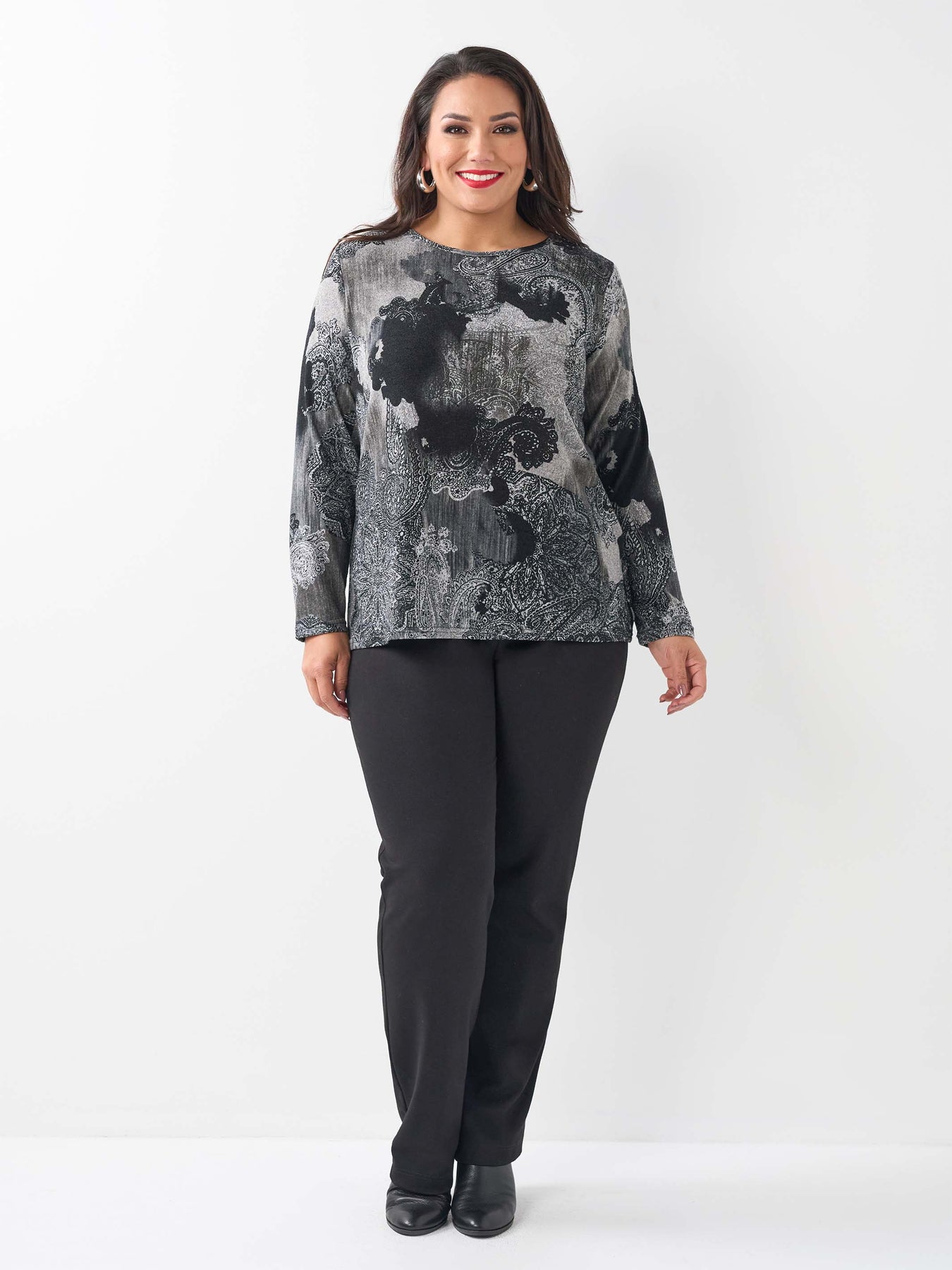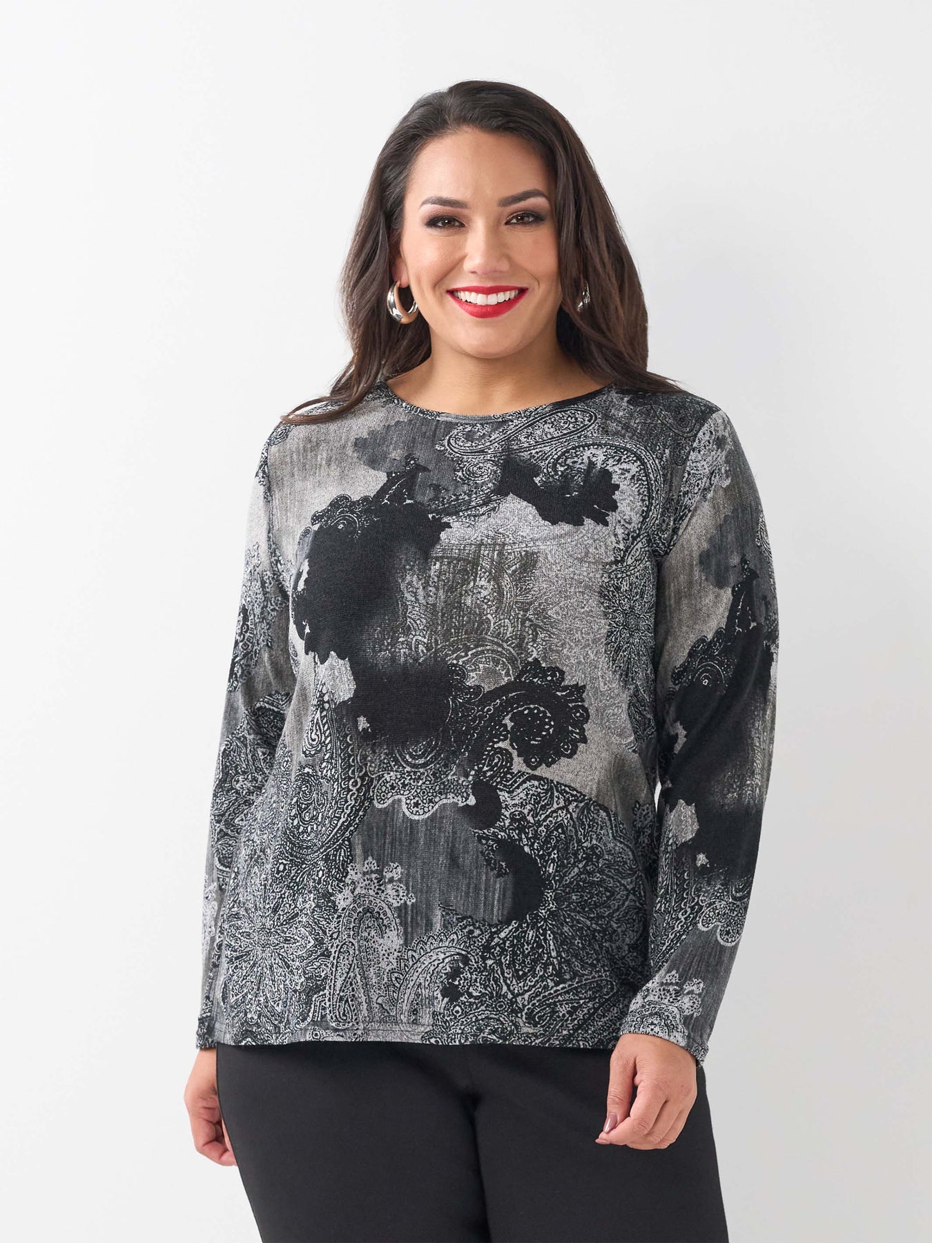 This Overcast print top is anything but dull. Warm, easy to wear and perfect layered or solo, it is the classic plus size piece you will love every winter.