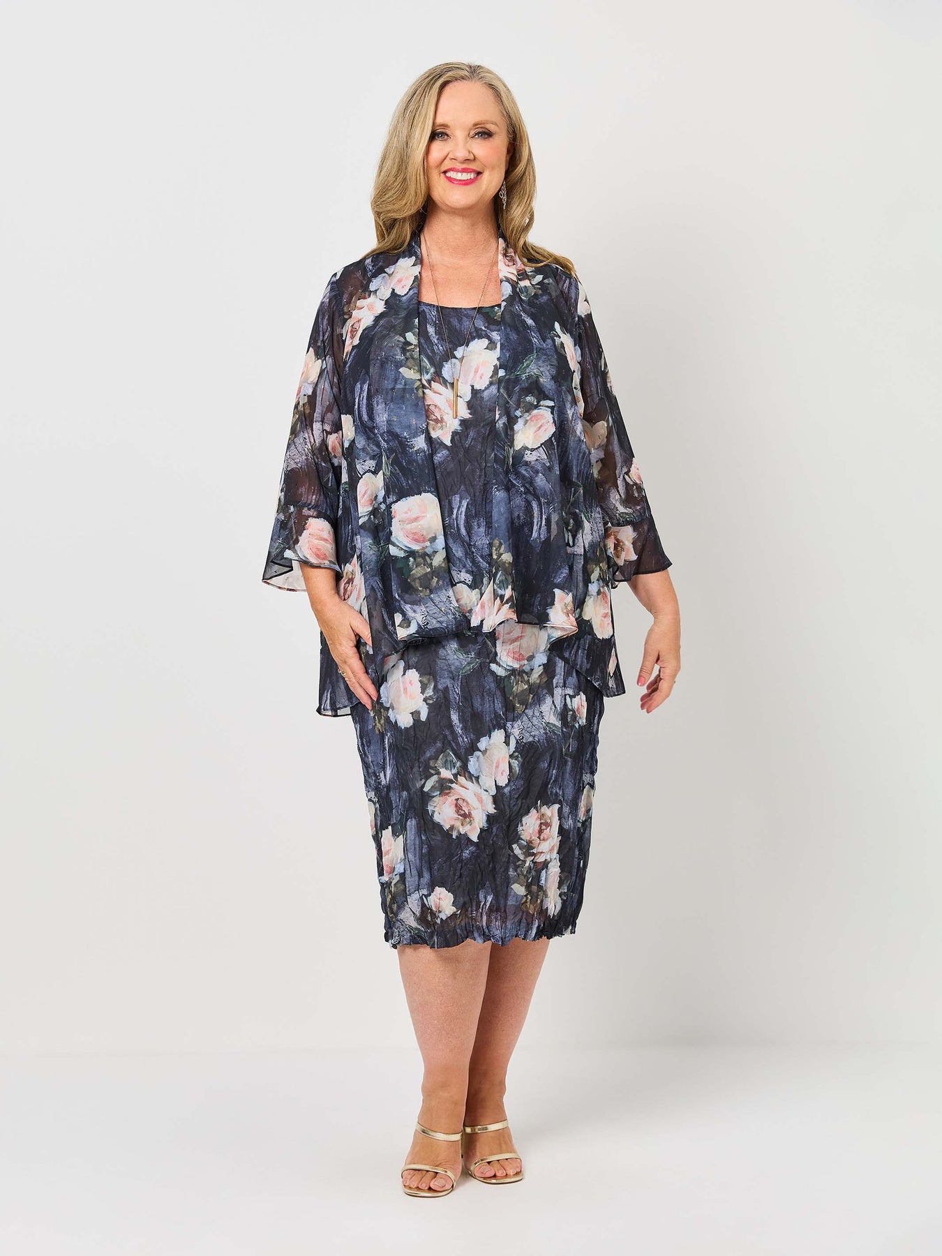 - Details: Lined georgette, crushed finish, wider strap, non stretch, rose print on charcoal with highlights of flecks of gold, stunning fabric, flattering and easy to wear straight through design, perfect wedding attire, we recommend a size up if you have purchased Swish jersey plus size dress 1016