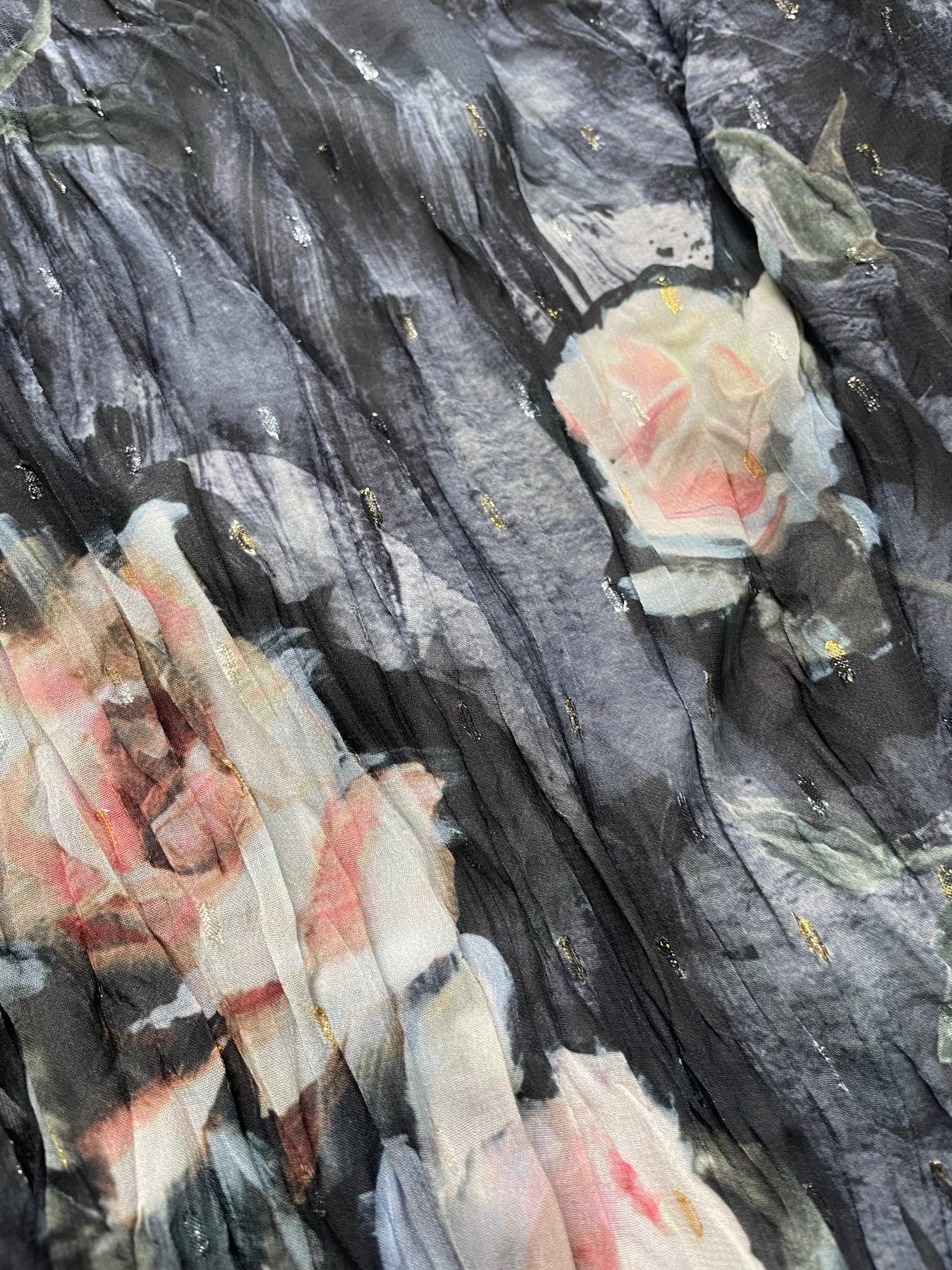 Shimmer Print Crushed Evening Dress - Wild Roses