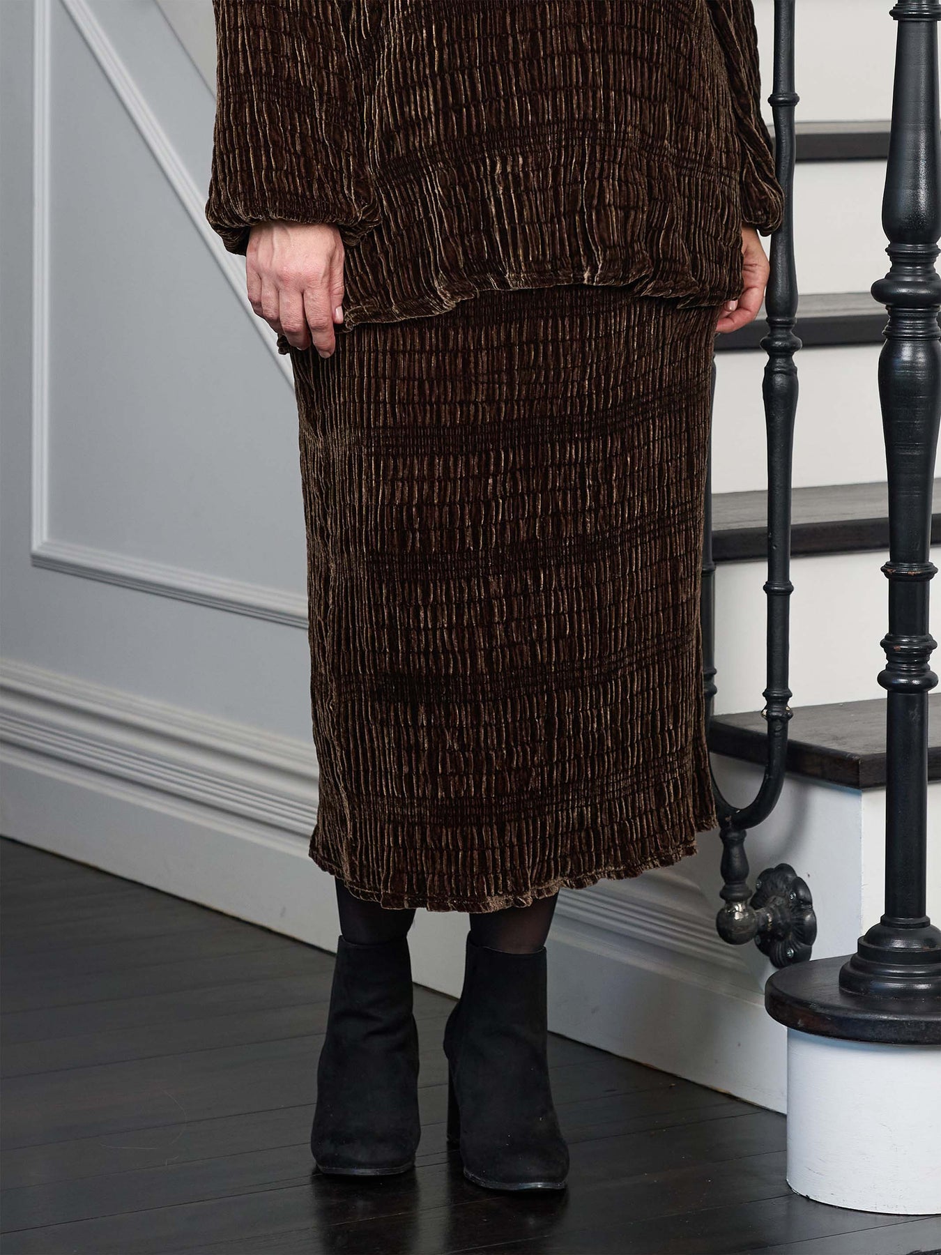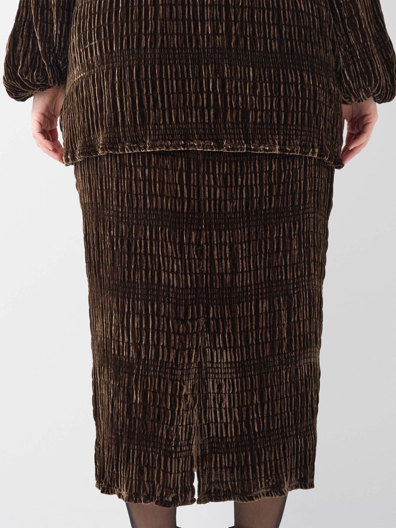 Crafted in deep, rich coffee hues, this plus size ruched skirt exudes sophistication and elegance. Designed to flatter and enhance your silhouette, it pairs perfectly with the coordinating evening top, style 743004, to create a stunning, polished ensemble for weddings, special nights out, or any occasion where you want to feel your best.