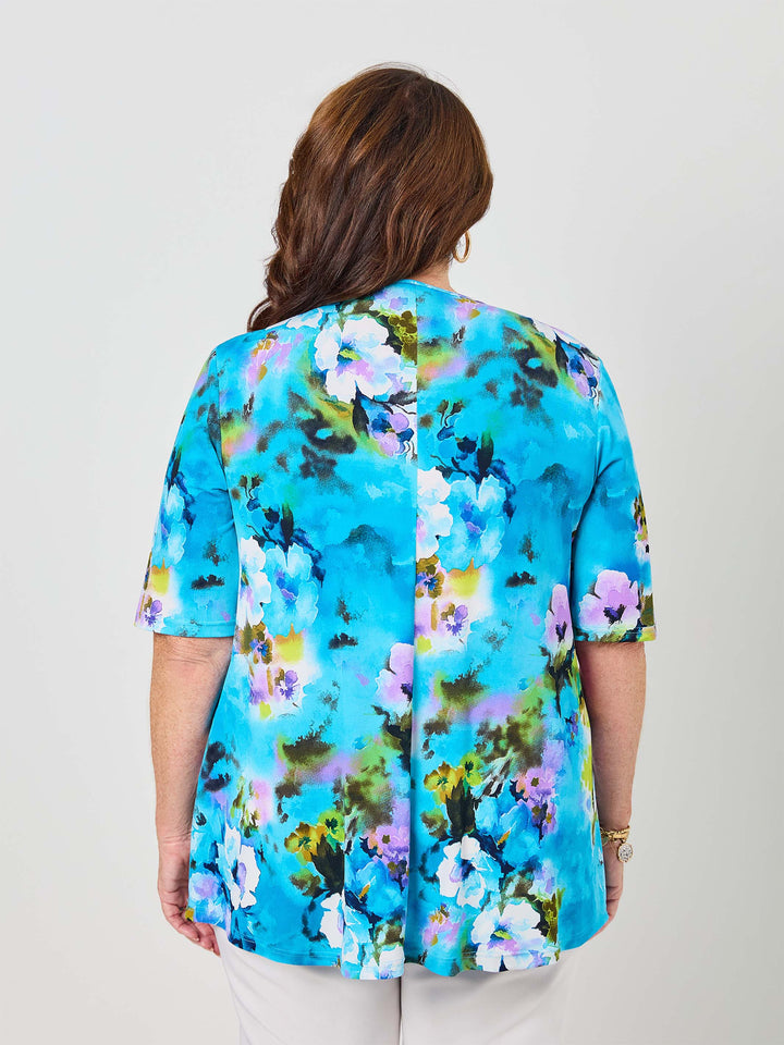 The ever-popular inverted pleat top offers timeless appeal and a classic design. With a burst of coastal blue, easy-wear comfort, and a flattering shape, its ocean-meets-floral inspired print makes it a standout favourite for summer. Crafted in soft stretch jersey with gently flowing lines, this plus size top blends style and ease for effortless everyday dressing.