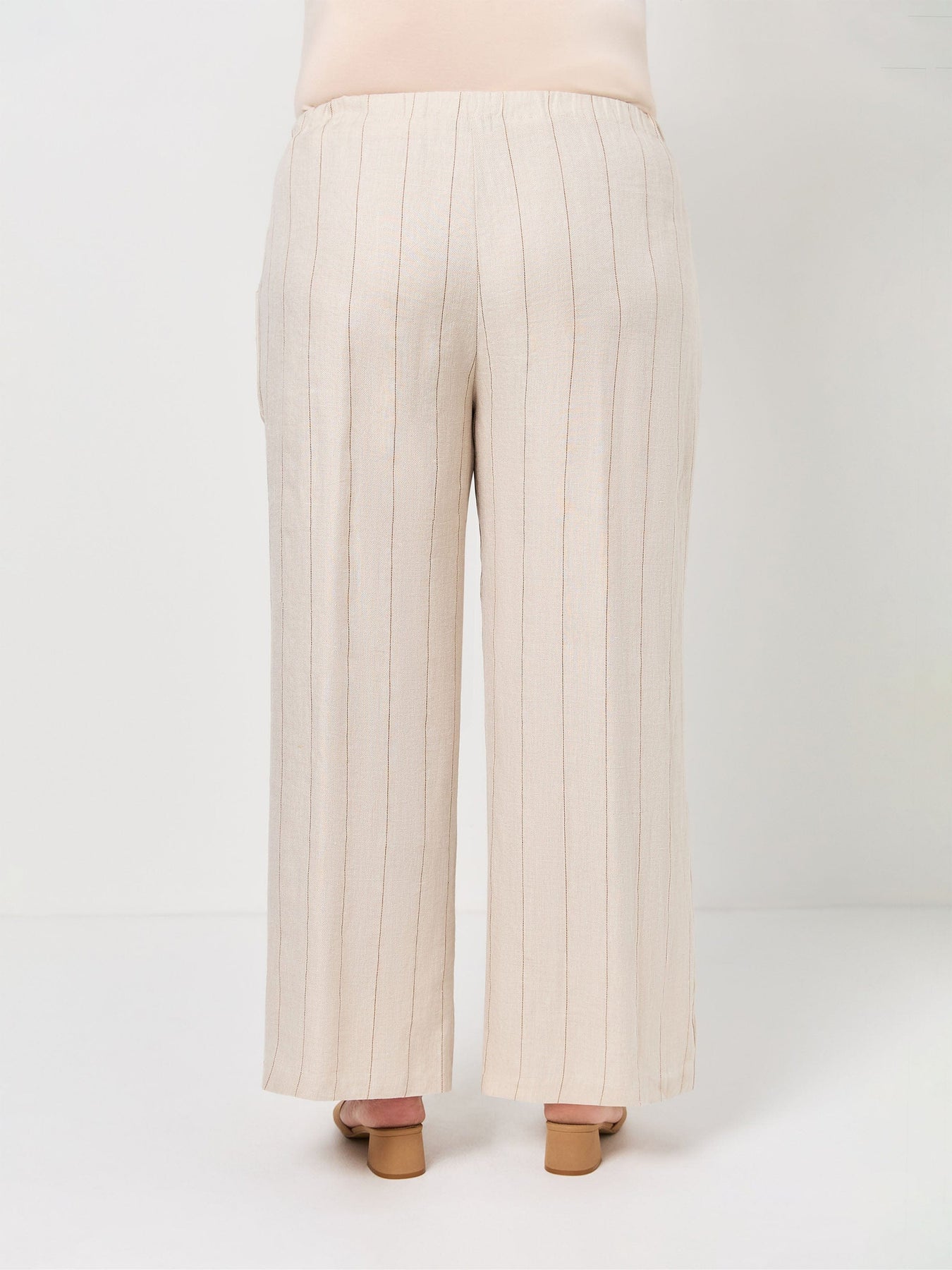 Pinstripe Plus Size Linen Pant - Natural Cocoa