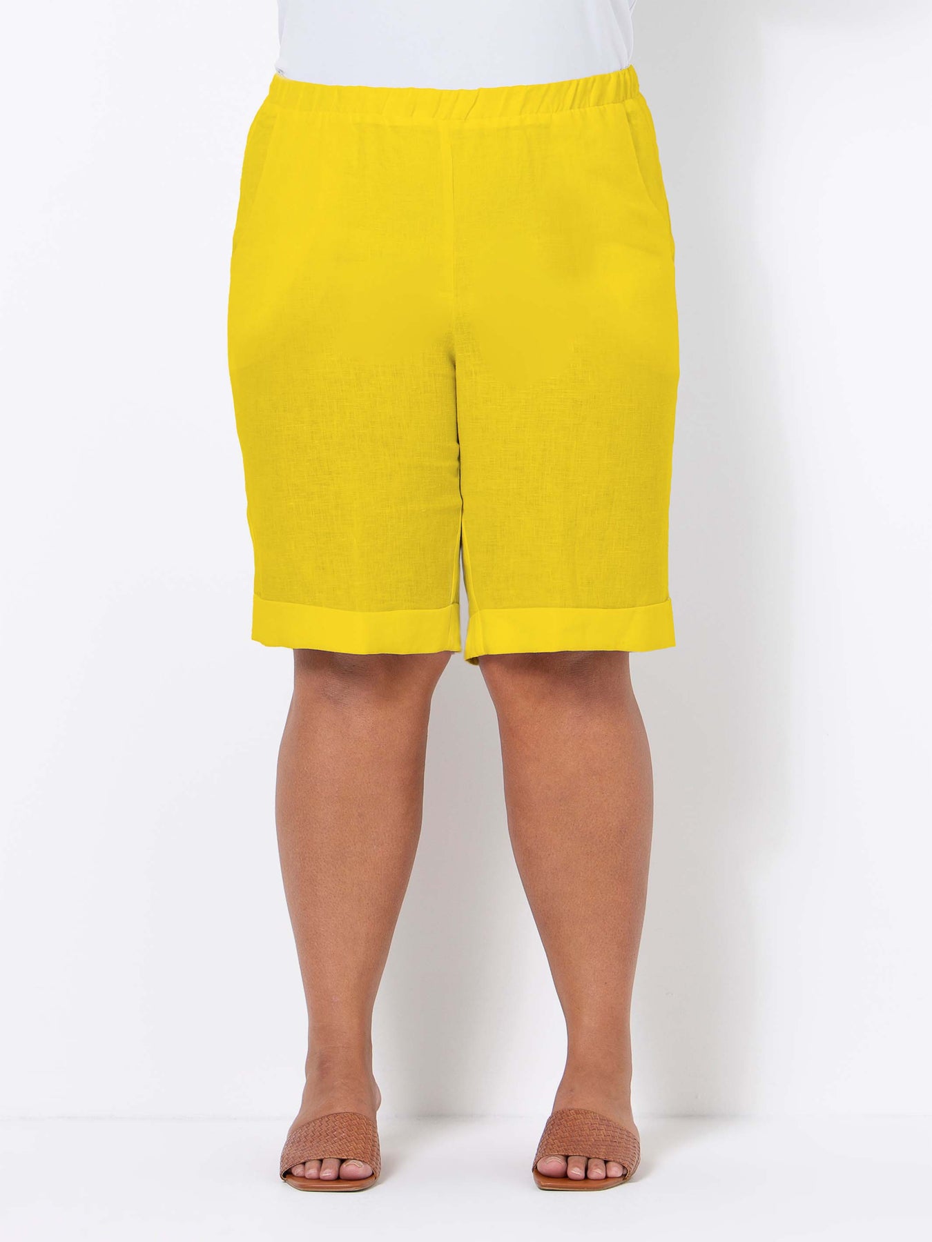Bright Mustard Linen Plus Size Shorts