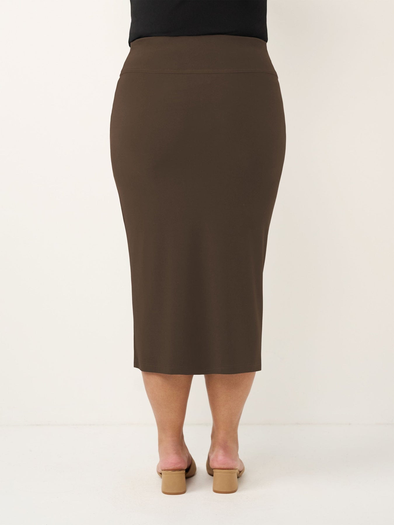 The Swish classic jersey plus size skirt in a longer length. Sitting mid calf, this comfortable stretch plus size skirt will be an essential and versatile addition to your wardrobe. Perfect for work, play or eveningwear