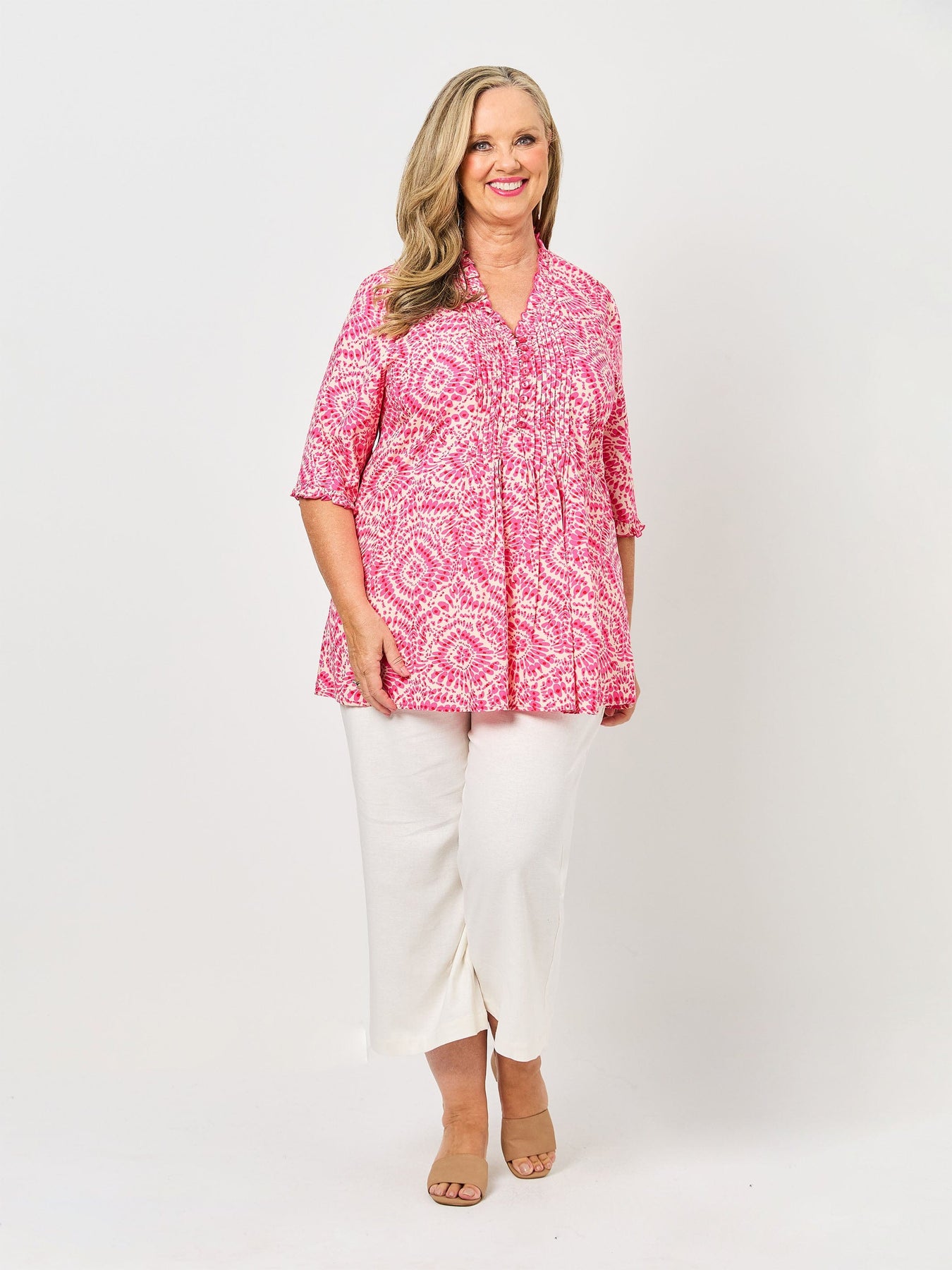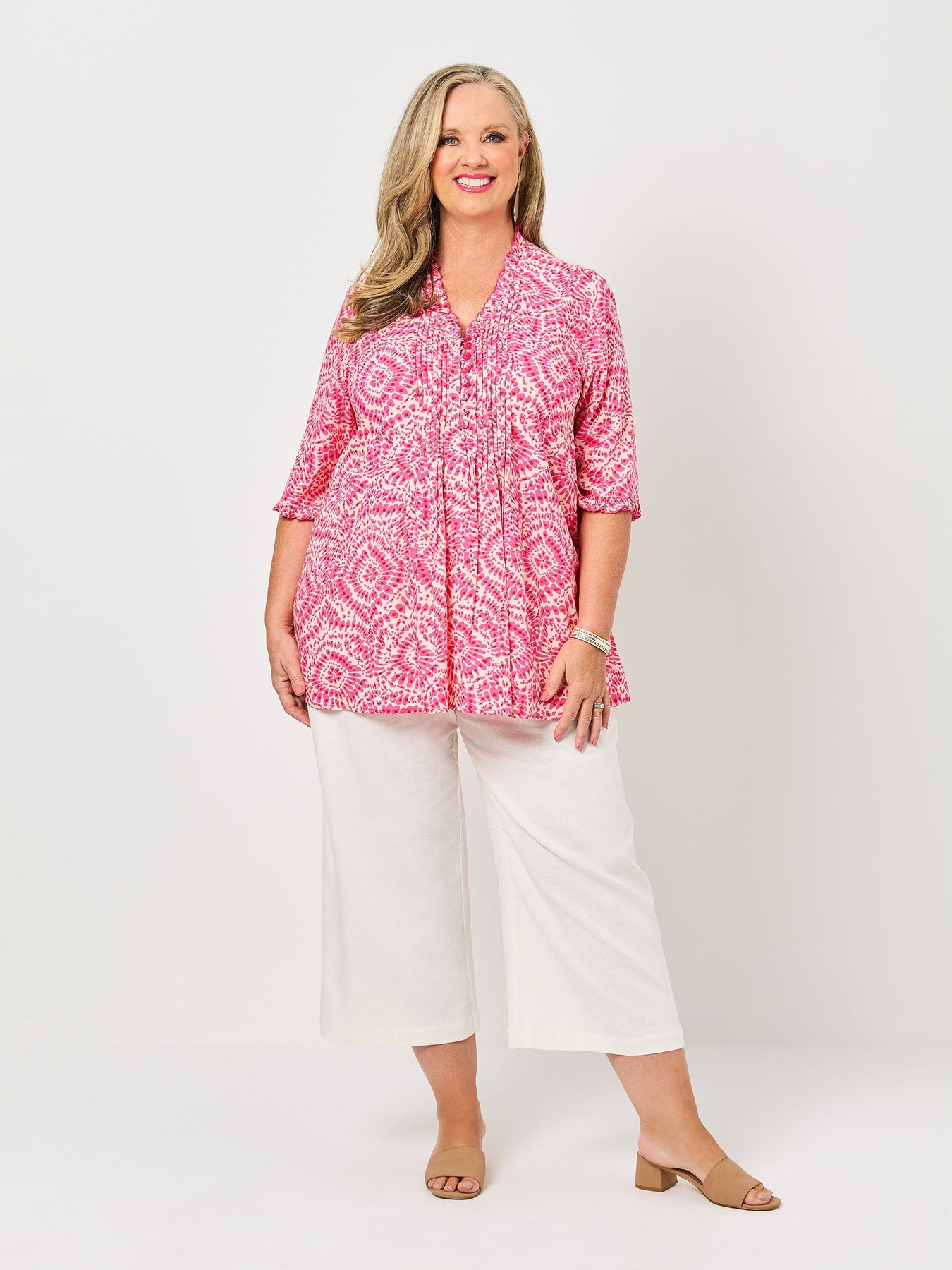 Pretty in pink says it all, fresh, cool and effortlessly feminine. Float through summer in this breathable rayon plus size top, designed to keep you looking and feeling your best. Perfect for those balmy summer days.