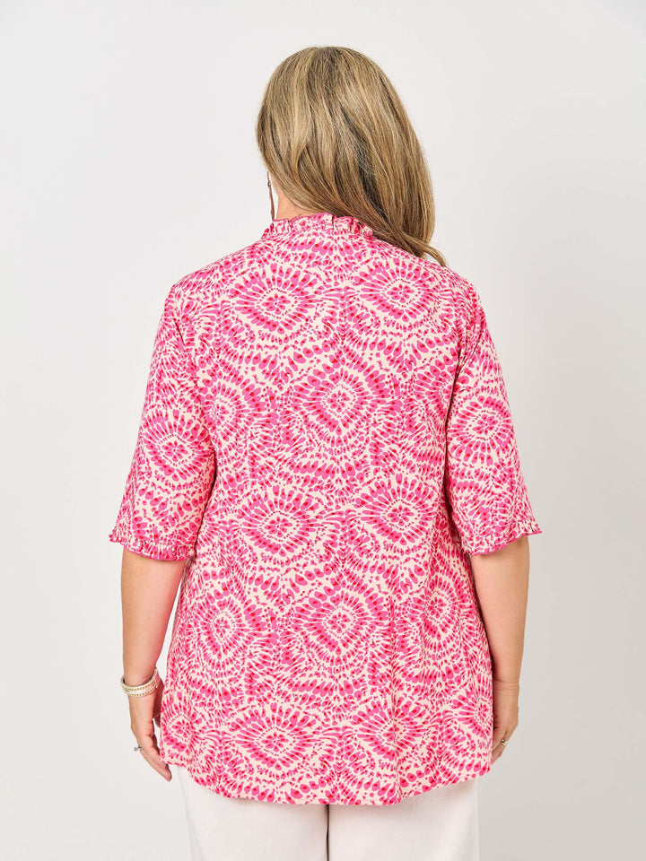Ruffle Trim Tucked Plus Size Rayon Top - Pretty in Pink