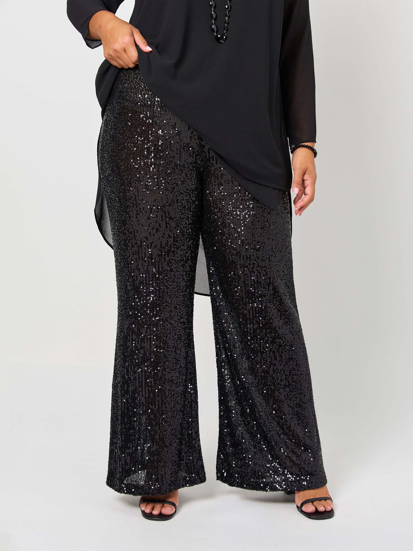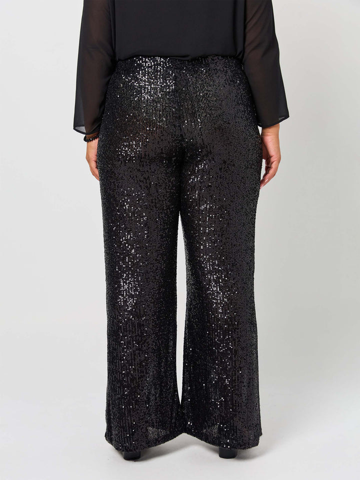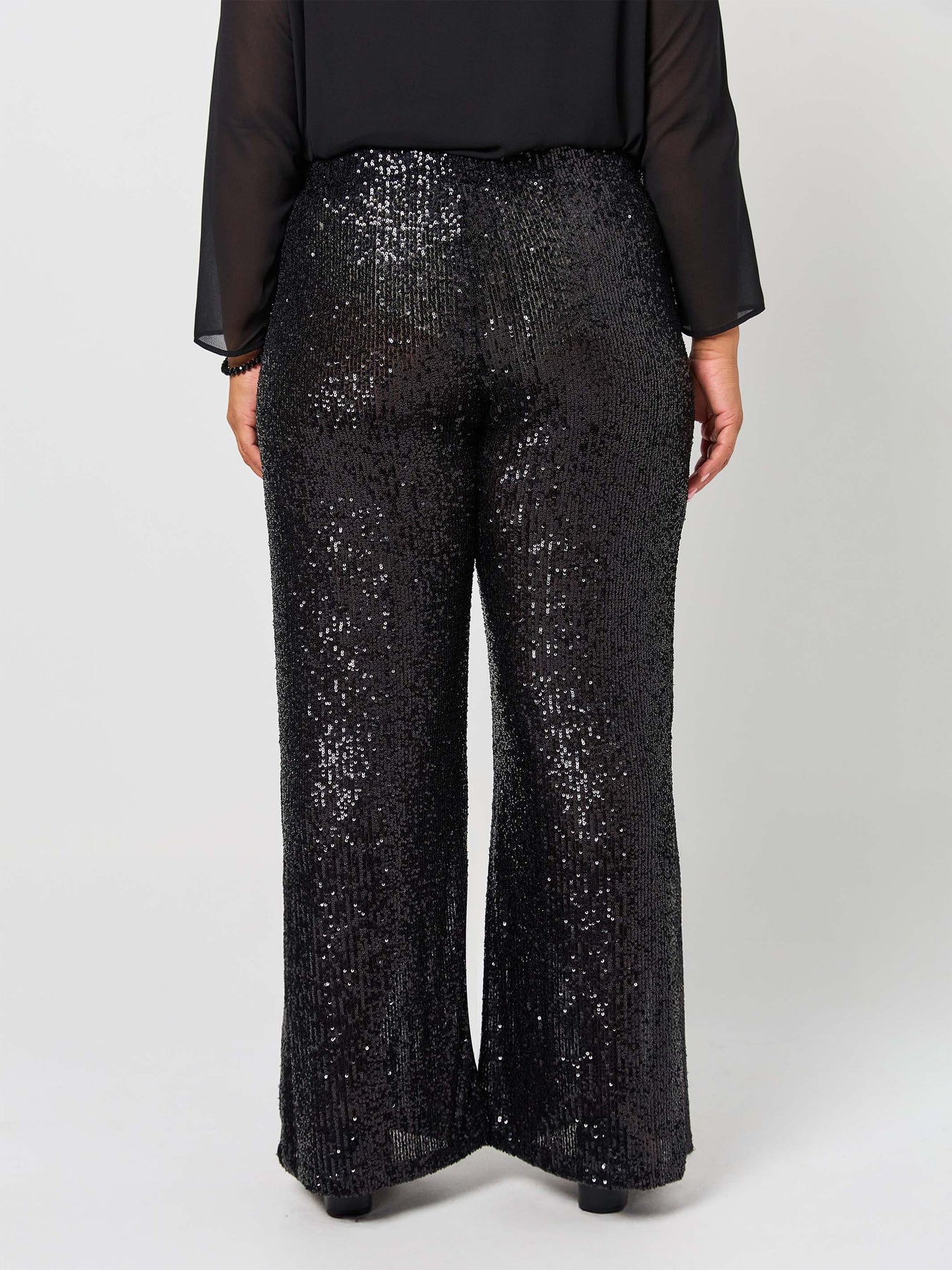 - Detail: Full length pull on palazzo style pant, sequin, elastis waist, lined