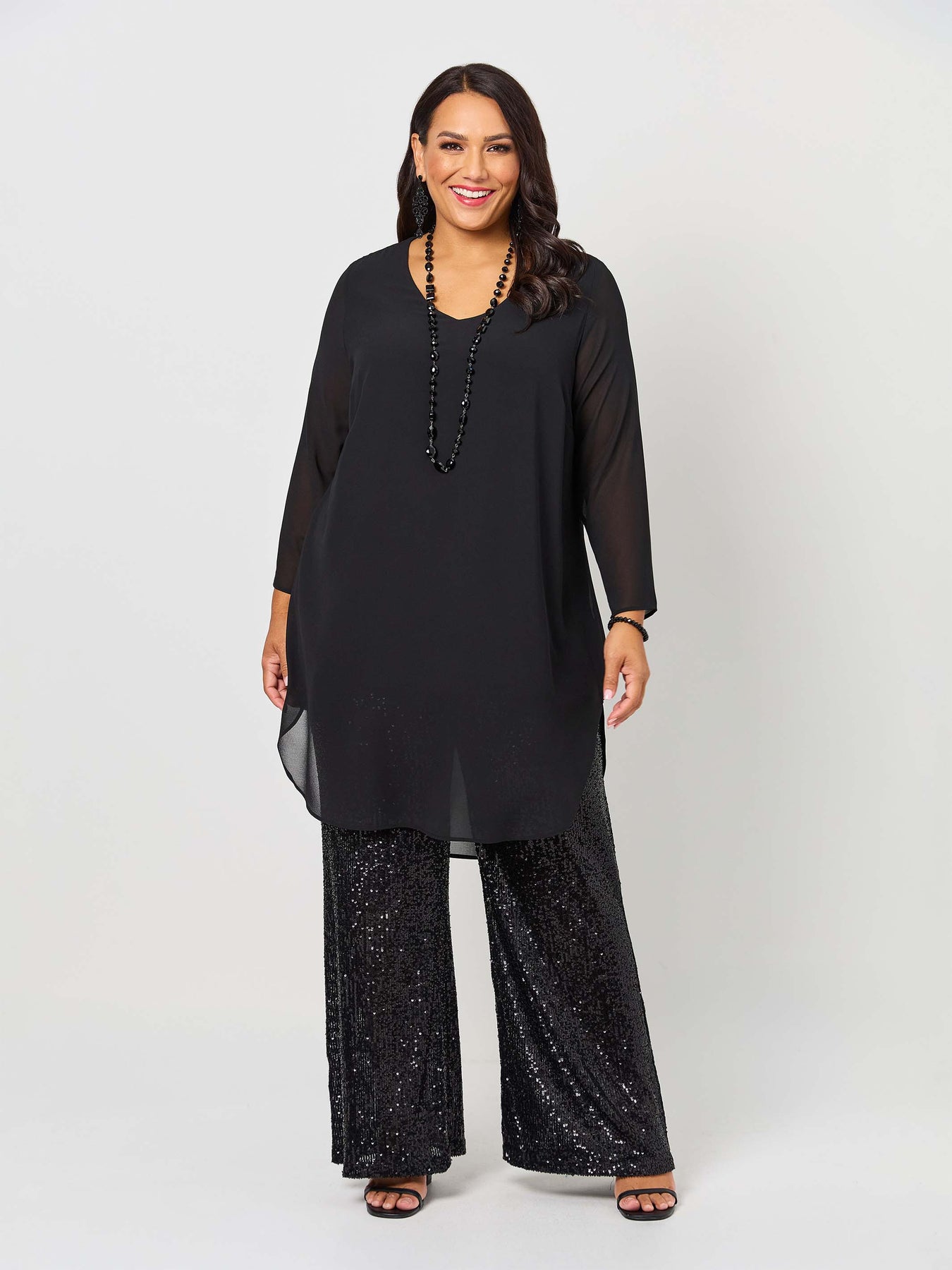 Add a touch of sophisticated sparkle to your evenings with our stunning sequin pant. Designed to dazzle, this elegant piece pairs exquisite styling with exceptional comfort. The pull-on design ensures ease of wear, while the shimmering sequin fabric brings effortless glamour to any occasion. Whether it’s a special event or a night out, this pant is your go-to for chic, confidence-boosting style.