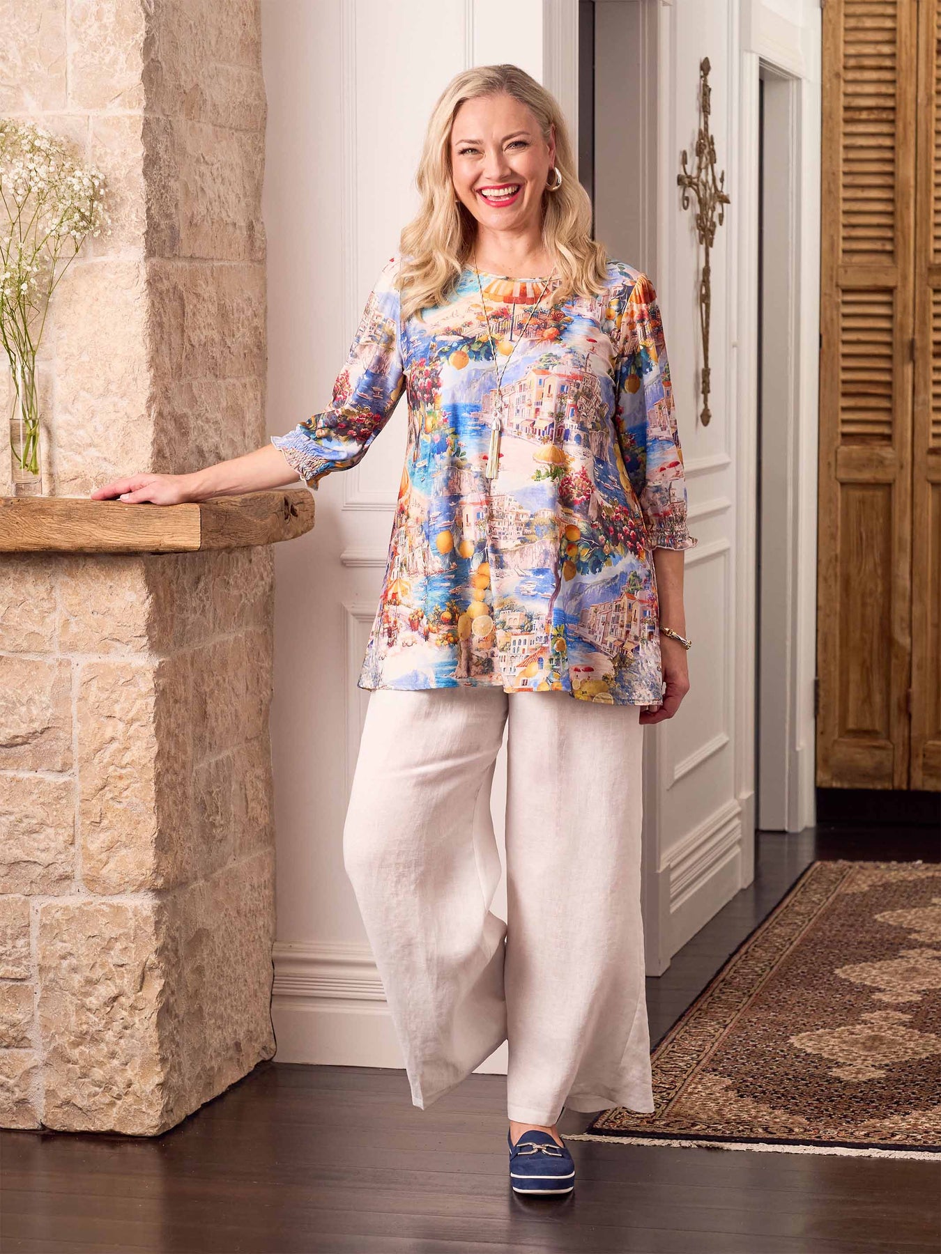 An invitingly fresh print, this A-line plus size top delivers the comfort and chic styling you expect from Swish. Featuring a Mediterranean-inspired design and soft stretch jersey fabric, it’s sure to turn heads. Pair it with your favourite Swish pant or short for the perfect summer finish.